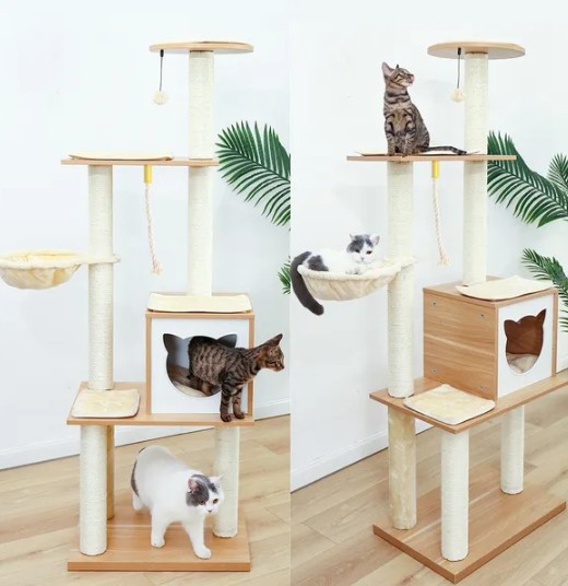 | 耐久性と安定性 | 環境に優しい木材には自然な強さと丈夫さがあり、猫が登りやジャンプに耐えることができ、腐食抵抗と昆虫抵抗が良好で、猫の木の耐用年数が延びています |