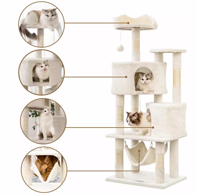 猫の木にある猫のスクラッチポストは、引っ掻いて登る場所であり、猫が自然な爪を運動し、満足させるためのスペースを提供します。猫のスクラッチポストは通常、抵抗性と耐久性が良好なサイザル材料で作られています。猫は、猫を引っ掻いて体を運動させ、筋肉の強さを強化するために、猫を登り、ジャンプして引っ掻くことができます。猫のスクラッチの投稿は、猫のおもちゃとしても使用して、エンターテイメントと楽しみを高めることができます。猫のスクラッチポストは、猫の観察ポイントとしても使用でき、猫が休んだり遊んだりするときに高い視点を提供します。