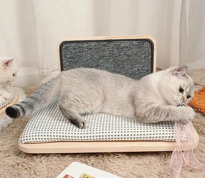 3.美しさと自然:固体木材フレームは、木材の自然な質感と色を保持し、スクラッチボードのある固体木材の居心地の良い猫の巣をより自然で高級に見せます。木材の自然な質感と色は、家庭環境に自然の雰囲気を加え、全体的な装飾効果を高めることができます。固体木材フレームのテクスチャーとタッチもより快適で、ペットはより良い使用体験を提供します。