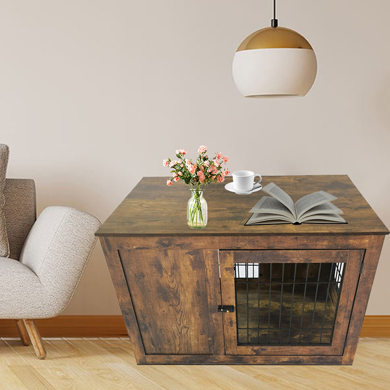 1.ハイエンドの材料保証:家具スタイルの犬ケージの選択された粒子ボードと低炭素鋼ワイヤーの組み合わせ構造、耐久性とペットの安全の両方の木製ボトムブラケットを備えています。