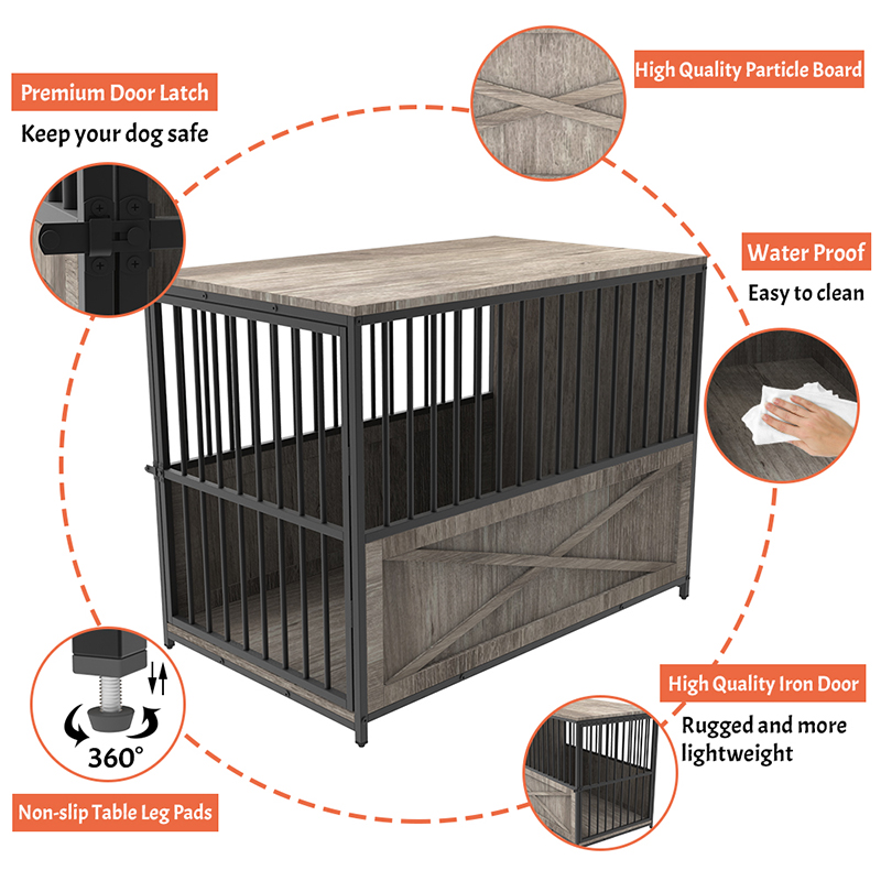 1.頑丈な構造:家具スタイルの犬のケージは、高品質の固体木材と錆びた金属フレームを選択し、アクティブペットによる長期使用に耐えるアンチニブルデザインに耐えます。
