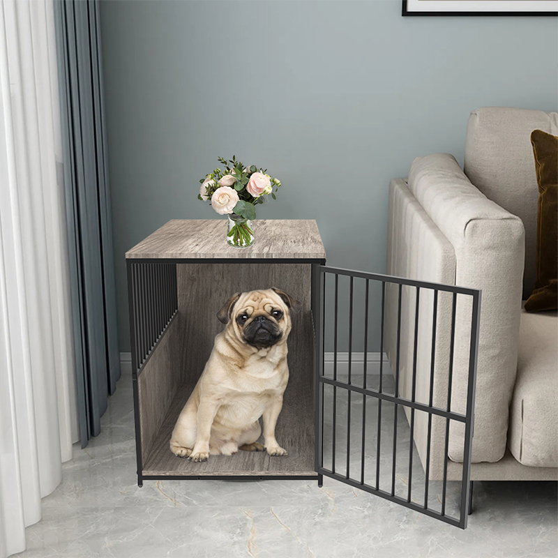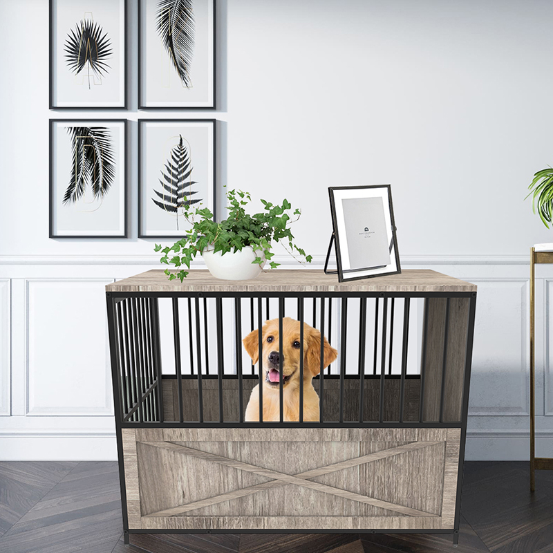 屋内の木製メタル家具スタイルの犬のケージ