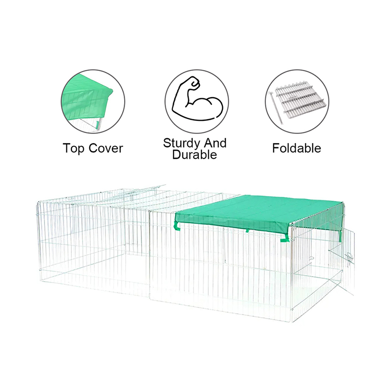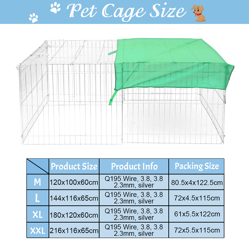 1。全体的な保護:Metal Dog Playpenの通気性のある日焼け止めのトップデザインは、夏にはペットに快適な色合いを提供します。簡単なアクセスと保護を組み合わせた、スライドロックの安全ドアの設計。